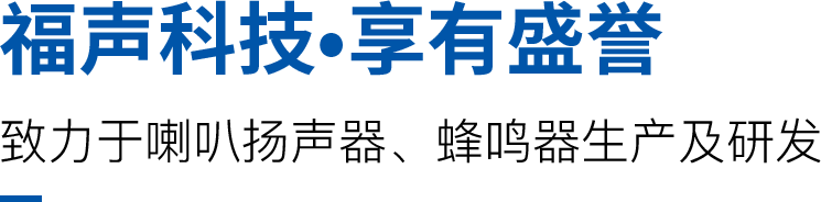 中心泰州福聲電子科技有限公司主要生產(chǎn)聲學器件,有著豐富的研發(fā)生產(chǎn)銷售經(jīng)驗, 我們主要生產(chǎn)喇叭、揚聲器、壓電式蜂鳴器、電磁式蜂鳴器、貼片式蜂鳴器等電聲元器件。